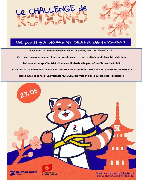 Le Comité Haute-Garonne Judo vous donne rendez-vous le samedi 23 mai 2026 pour le Challenge de Kodomo : une journée exceptionnelle dédiée aux enfants et à leurs familles